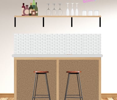 Storage – Plan for shelving or built-in cubbies for bottles and glasses. (And remember, these are things you can add later if your want to stay on budget)