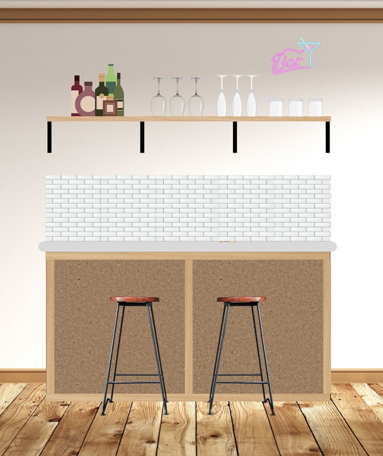 Plywood, MDF, or Wall Board for the bar structure – $50–$100