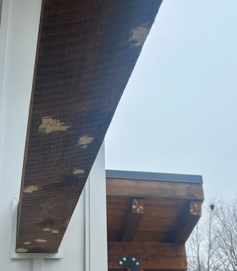 Sanding and Staining: After filling, there’s the cosmetic work. Once the filler hardened, I went over each patched spot with to smooth it flush with the wood surface. Pine is soft, so it only took a bit of sanding to blend the repair. Then I applied a matching stain and sealant over those areas to help camouflage the patches and add some protection. From a few steps back, you’d hardly know there were once dozens of little holes there. Our timber frame looked as good as new – until you get really close and see a sprinkle of round filler dots like a Dalmatian pattern on the wood. I joke that those are “battle scars” of our home’s war with the bees.